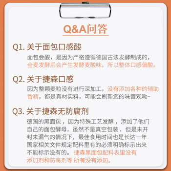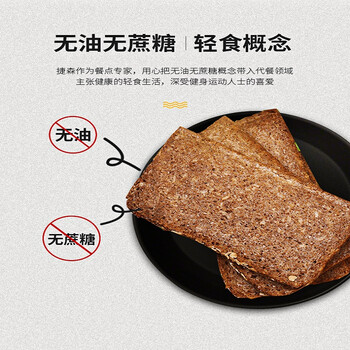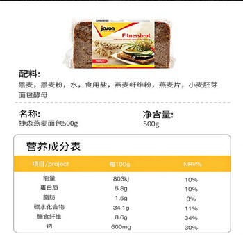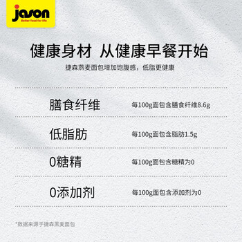 • 捷森jason 燕麦黑面包500g/袋 饼干蛋糕全麦早餐吐司 粗粮低脂无蔗糖食品健身代餐