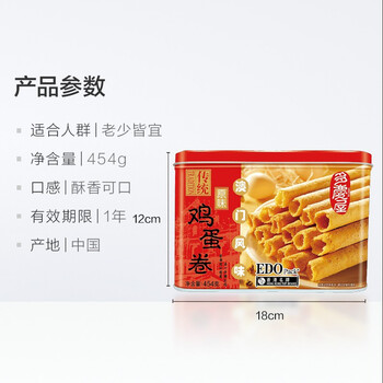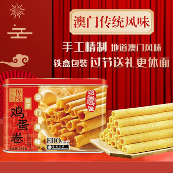 • EDO Pack澳门风味手工传统鸡蛋卷礼盒原味454g 休闲零食饼干 广东特产下午茶糕点