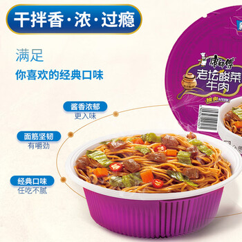 • 康师傅方便面干拌面老坛酸菜牛肉面12碗碗面泡面整箱装休闲零食