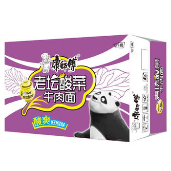 • 康师傅方便面老坛酸菜牛肉桶面12桶桶面泡面整箱装休闲零食
