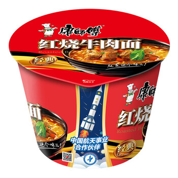 • 康师傅 方便面 开心桶 红烧牛肉桶面 12桶 泡面 整箱装