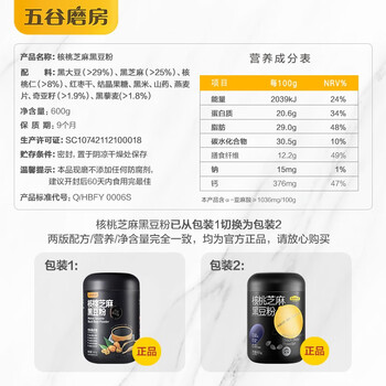 • 五谷磨房早餐 核桃芝麻黑豆粉奇亚籽黑藜麦五谷杂粮代餐粉黑芝麻糊黑芝麻粉600g