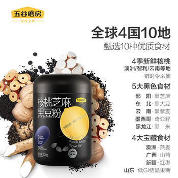 五谷磨房早餐 核桃芝麻黑豆粉奇亚籽黑藜麦五谷杂粮代餐粉黑芝麻糊黑芝麻粉600g