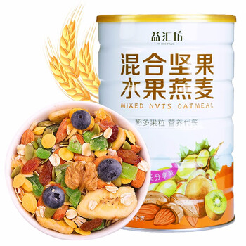 • 益汇坊 混合水果坚果燕麦片 冲饮谷物 即食早餐麦片 牛奶好搭档 庭分享装 懒人健身代餐 水果麦片1000g