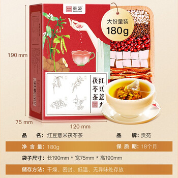 • 贡苑 红豆薏米茯苓茶180g 赤小豆薏苡仁陈皮山楂决明子甘草滋补养生茶花茶可搭湿袋泡茶叶包气泡水喝的