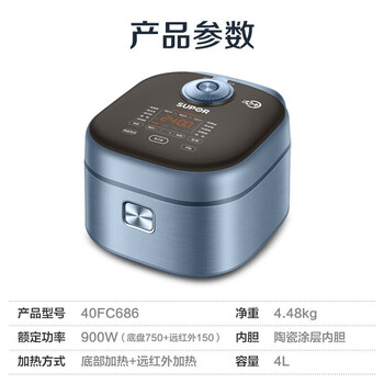 苏泊尔(SUPOR)电饭煲4升远红外加热本釜内胆电饭锅多功能 SF40FC686
