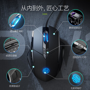 • 英菲克(INPHIC)PW1h 有线鼠标 游戏鼠标 静音鼠标 宏定义 家用笔记本电脑台式USB通用 黑色