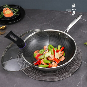 • 张小泉复合钢蜂窝不粘炒锅304不锈钢蜂窝炒锅 防粘锅煎锅燃气电磁炉通用C30690200