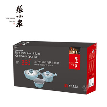 • 张小泉 蓝色经典不粘锅三件套麦饭石色不粘锅具套装 炒锅煎锅汤锅三件套家用无油烟厨具C35230100