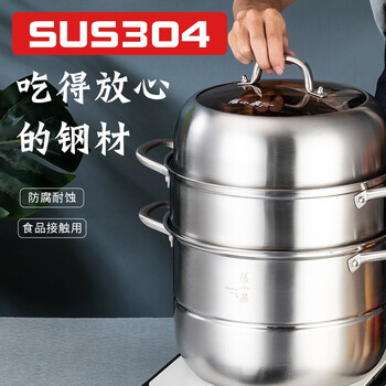 • 张小泉 锋味三层蒸锅 优质304不锈钢,茶色钢化玻璃盖三层蒸笼大号容量 汤锅 C35310100