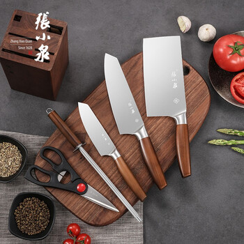张小泉 鬼冢·虎系列套刀六件套厨房套刀切片刀切菜刀斩骨刀多用小厨刀水果刀实木刀座D31410100