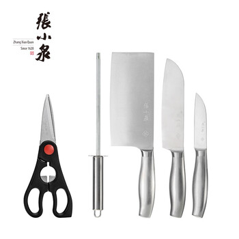 • 张小泉 银睿套刀六件套 厨房套刀切片刀切菜刀斩骨刀多用小厨刀水果刀刀座自带 D40500100