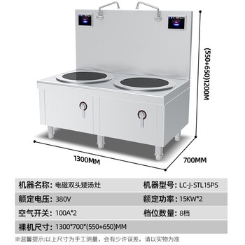 乐创( lecon) 15KW*2熬汤高背汤灶 304不锈钢工程款 LC-J-STL15PS