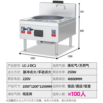 • 乐创 (lecon) 锅径800天然气/液化气可选酒店饭堂炒灶 节能款 LC-J-DC1