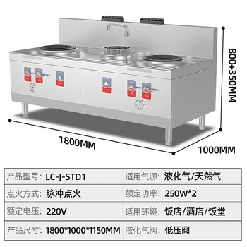 • 乐创(Lecon)天然气/液化气可选酒店饭堂企业燃气灶 LC-J-STD1