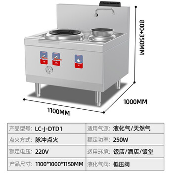 • 乐创(Lecon)天然气/液化气可选酒店厨房企业燃气灶 LC-J-DTD1