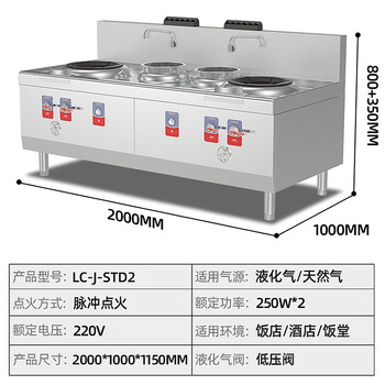 • 乐创(Lecon)天然气/液化气可选酒店饭堂企业燃气灶 LC-J-STD2