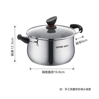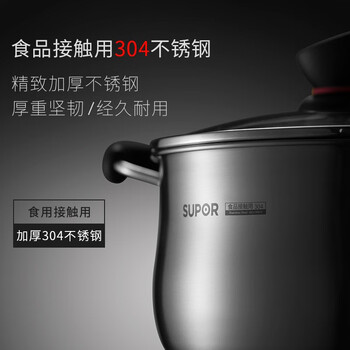• 苏泊尔SUPOR小红圈304不锈钢汤锅22cm复底加厚炖锅电磁炉通用ST22Z1