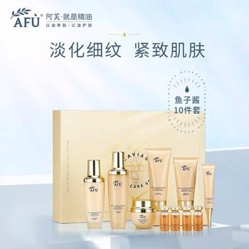 • 阿芙AFU鱼子酱二裂酵母10件套 护肤品套装礼盒 提拉紧致 淡化细纹 修护纹路 补水保湿滋润 焕颜奢养