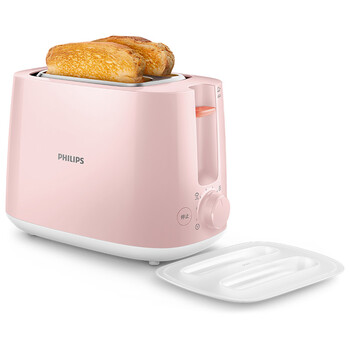 • 飞利浦(PHILIPS)多士炉吐司机全自动家用烤面包机内置烘烤架带防尘盖HD2584/50粉色