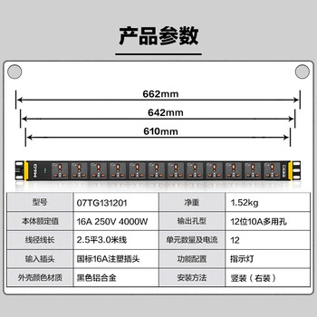 • 突破(M&G)pdu机柜插座/12孔位/16A输入/竖装上进线右装 07TG131201