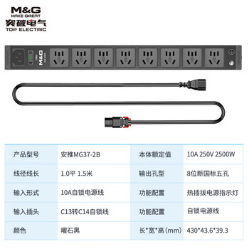• 突破(M&G)安推MG37-2B 焕新PDU机柜插座/10A/插排/线长1.5米