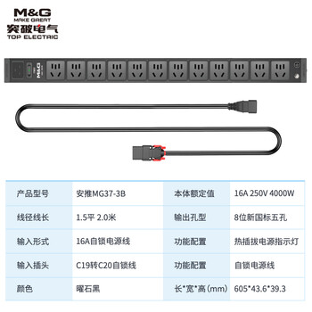突破(M&G)安推MG37-3B焕新PDU机柜插座/16A/插排/线长2米