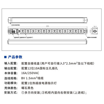 M&G 突破 安推MG37-10B PDU机柜插座 12位新国标孔带接线盒 12位右侧安装