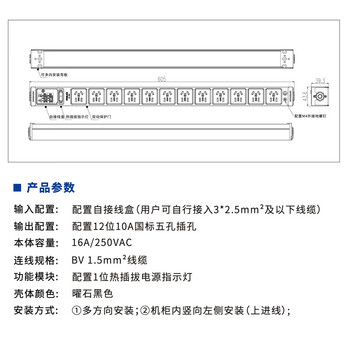 M&G 突破 安推MG37-11B PDU机柜插座 12位新国标孔带接线盒 12位左侧安装