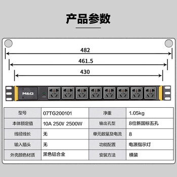 • 突破(M&G)PDU机柜插座/国标10A8孔位/接线板/2500W大功率插排/插板/自接线盒PDU 07TG200101