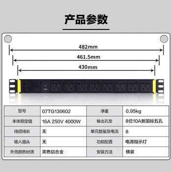 • 突破(M&G)pdu机柜插座/大功率插排/10A输出国标小五孔/自接线16A输入8孔位/07TG130602