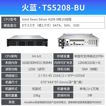 - 火蓝存储(hoodblue)备份一体机8/12/24盘数据库备份CDP强接管虚拟机系统备份服务器 TS5224-SA-192TB