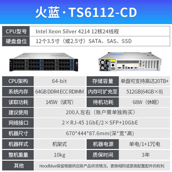 - 火蓝存储(hoodblue) TS6112云盘一体机网盘远程访问协同办公网络数据安全文件共享存储备份 TS6112-CD-168TB