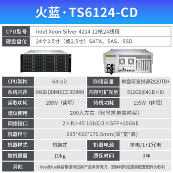 - 火蓝存储(hoodblue) TS6124云盘一体机24盘网盘远程访问协同办公数据文件共享存储备份 TS6124-CD-288TB
