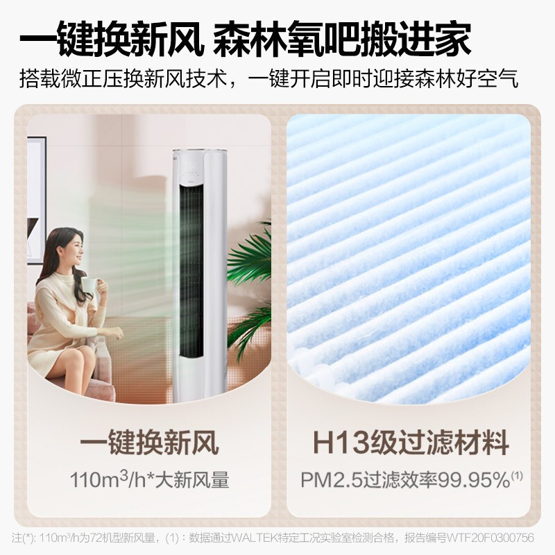美的 KFR-72LW/N8MKA1A 新风空调 3匹 焕新风 新一级智能柜机 变频冷暖 立式柜机