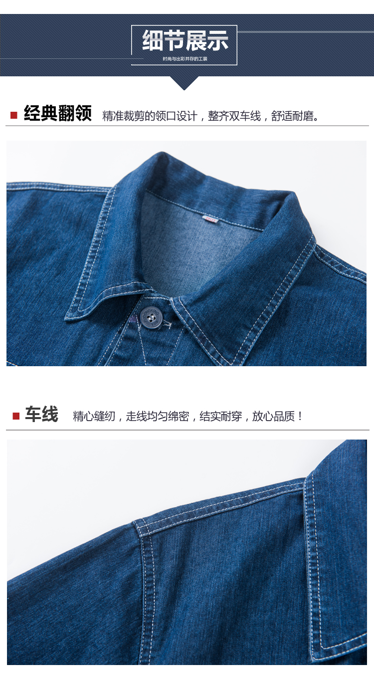 • 红都 工作服 全号可量体 牛仔服纯棉长袖夏季薄款