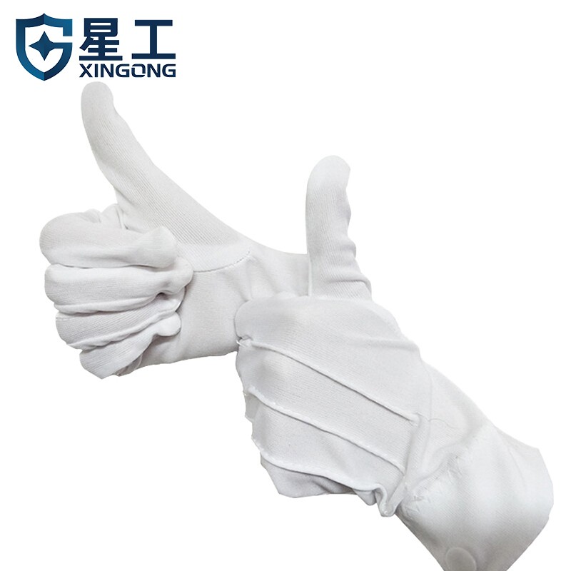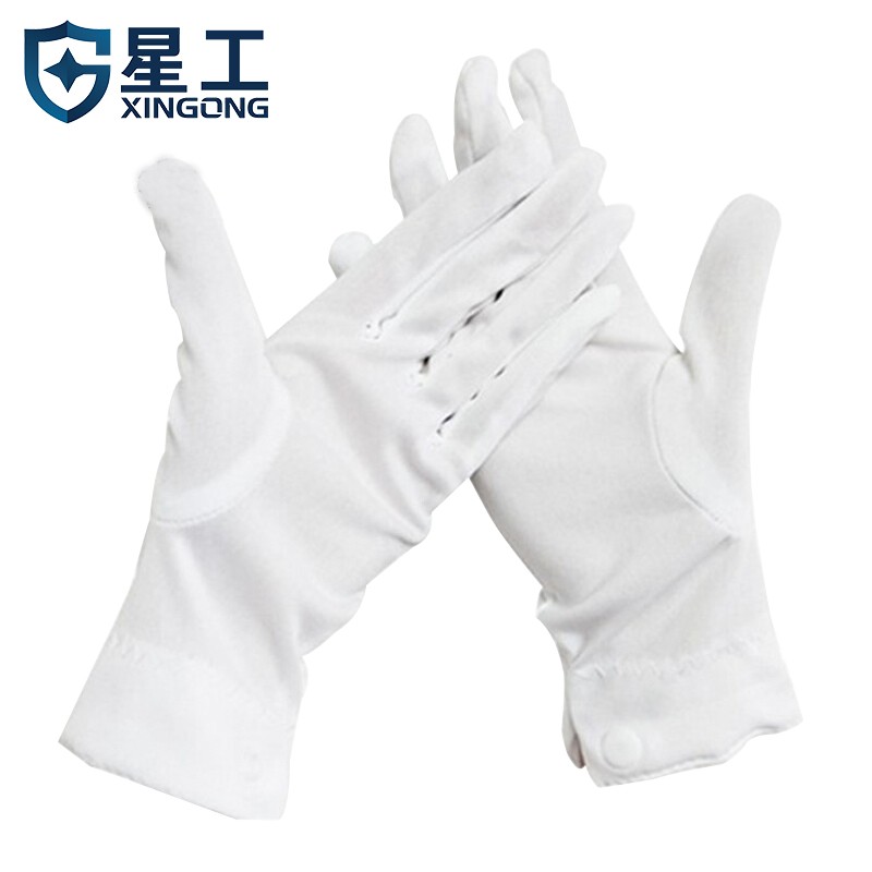 星工(XINGGONG)三筋白手套 涤纶带扣文玩礼仪接待开车劳保手套 10付
