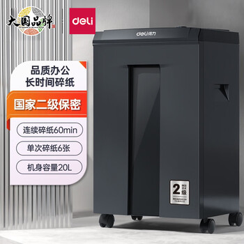 得力(deli)国家二级保密商用办公碎纸机( 持续60分钟 单次6张 20L 可碎卡)JD666