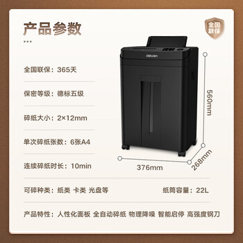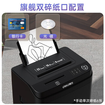 • 得力(deli) 全自动碎纸机 5级高保密 旗舰三粉碎口 商用办公大型碎纸(可碎光盘卡) 33679