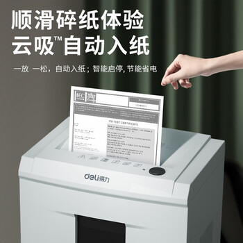 • 得力(deli)5级保密商用办公碎纸机 长时间碎纸机(单次6张 20L 持续60分钟 可碎卡)33152