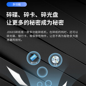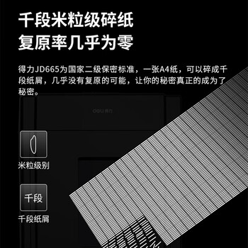 • 得力(deli)碎纸机 国家二级保密认证商用办公碎纸机(单次8张 20L 持续10分钟 可碎卡碎光盘)JD665