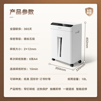 • 得力(deli)全自动碎纸机 5级高保密 连续自动碎纸60张 家用办公碎纸机 2m/min高速碎纸机 GA810
