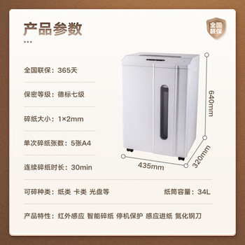 • 得力(deli)7级保密专业销毁碎纸机(单次5张 34L 持续30分钟 可碎卡)14408