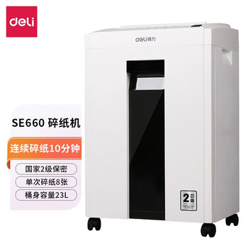 • 得力(deli)SE660 2级保密大型碎纸机(单次碎纸8张 23L 持续10分钟 可碎光盘碎卡)