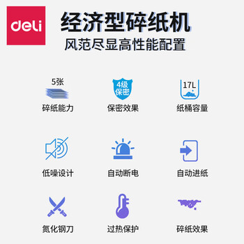 • 得力9929碎纸机大功率4级保密电动办公17L大容量碎纸粉碎机