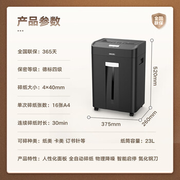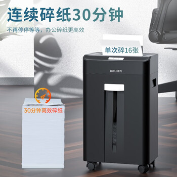 • 得力(deli)商用办公碎纸机 大吞吐长时间碎纸机(单次16张 23L 持续30分钟 可碎卡)33163