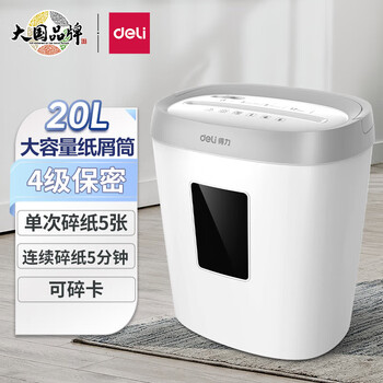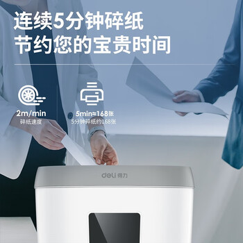 得力(deli) 小型便携碎纸机办公家用桌面 4级保密颗粒 33186W 单次碎纸5张 持续5分钟 20L