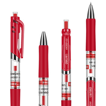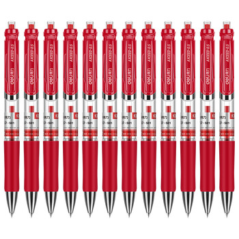 得力(deli) 按动中性笔子弹头0.5mm自动笔碳素自动水笔签字按动式 0.5mm红色按动款 12支(S01)