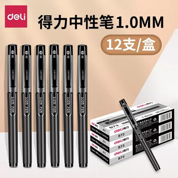 • 得力(deli) 1.0mm加粗中性笔水笔碳素水笔签字笔 办公学生文具S73
