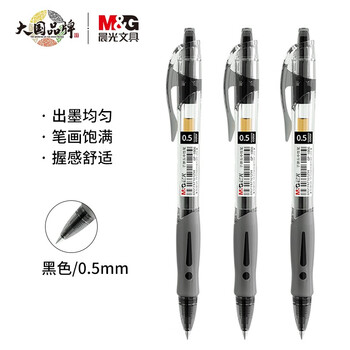 • 晨光(M&G)按动中性笔签字笔按动笔芯红笔办公文具0.5mm经典GP1008子弹头黑笔 黑色12支